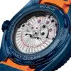 The blue rubber strap with contrasting orange stitching and edge lining doesn’t just look sporty – it feels amazing. Lightweight, breathable, and resistant to saltwater and sweat, it’s perfect for everything from outdoor adventures to daily wear in the city heat.
