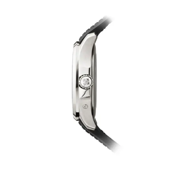 Featuring a bold black embossed dial, the Aquanaut 5164A displays dual time zones (local and home time), with day/night indicators and a hand-date subdial at 6 o’clock. This makes it ideal for professionals and global jet-setters alike.
