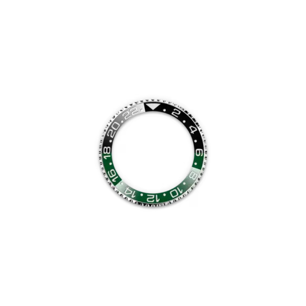 Bezel: Bidirectional rotatable 24-hour graduated bezel, two-colour green and black Cerachrom insert in ceramic with moulded numerals and graduations