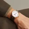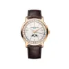 The brown alligator leather strap paired with an 18K pink gold ardillon buckle ensures luxurious comfort and a classic look, complementing the case’s elegant profile.